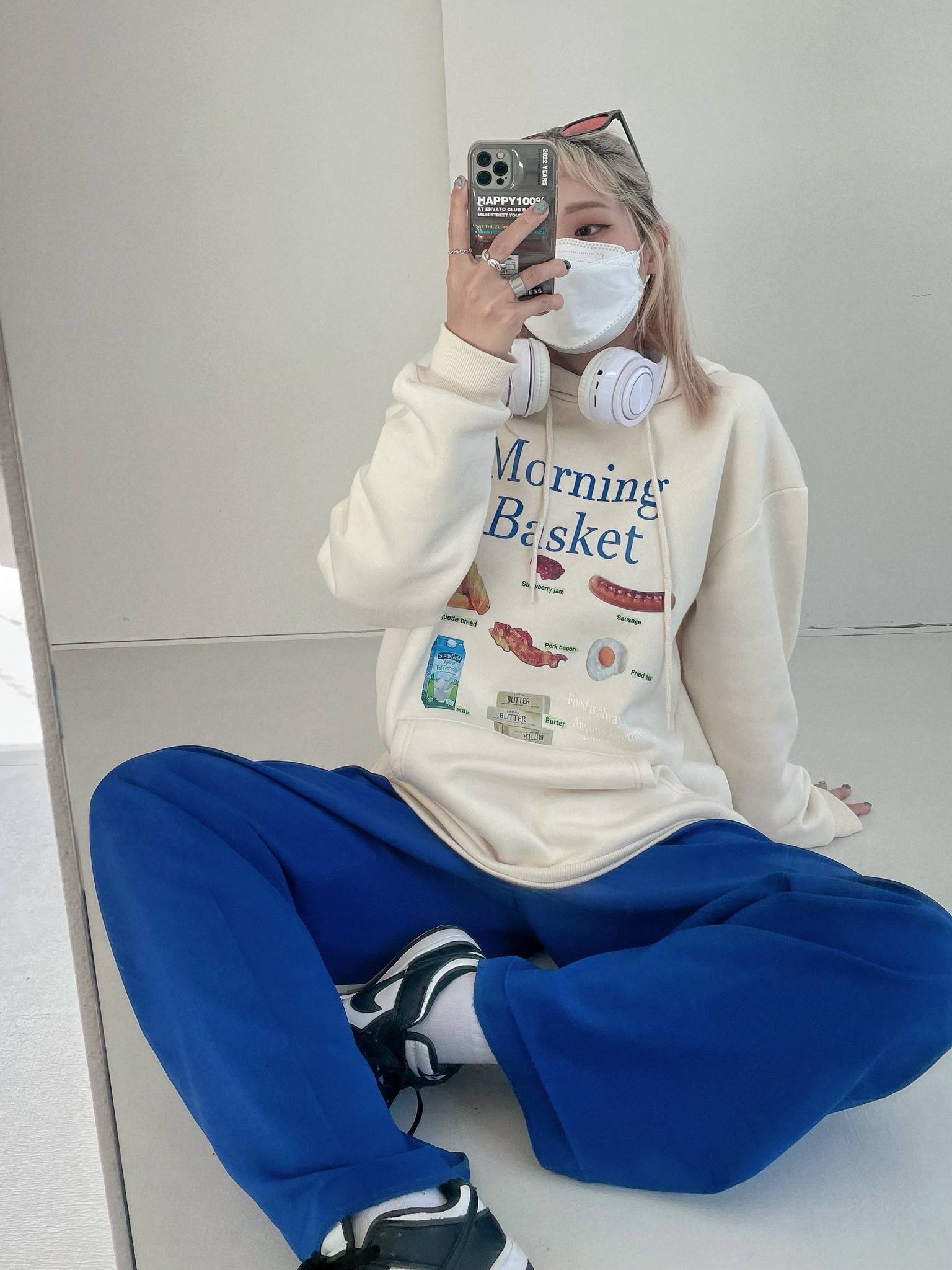 咖啡英文內刷毛長袖大學T*3色 KB659